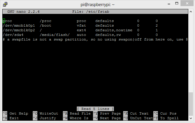 sudo nano /etc/fstab